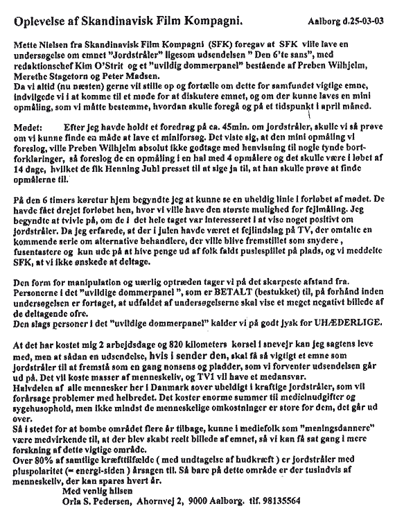 FORNEMMELSE FOR DANMARKS RADIO`S, JOURNALIST ØJVIND KYRØ`S OG PSEUDOSKEPTIKERNE`S SNYD